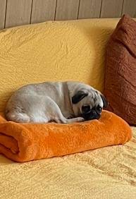 Das Möpschen ist ansonsten ein Traum für alle Mopsliebhaber. Gesellig mit Artgenossen und immer zu einem Spielchen aufgelegt.Total freundlich mit Menschen, zu Kindern können wir keine Aussage machen, weil keine Kinder in der Umgebung der Pflegestelle wohnen. Aber nach unserer Einschätzung sollte auch das passen.