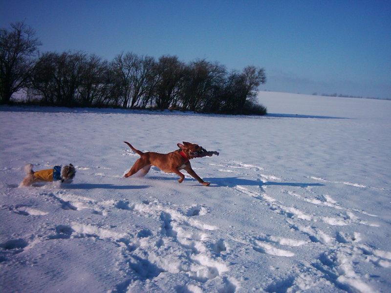 Mit Hunden hat sie keine Probleme. Wenn Frauchen in der Nähe ist, entwickelt sie gegenüber den Artgenossen jedoch einen Schutztrieb.