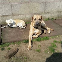 Saupacker-Mix, männlich geb.22.03.2013 Standort Dorsten Aragon wurde im 2013 in seiner jetzigen Familie geboren. Er lebte mit seiner Mutter, seinem Vater, zwei jüngeren Mischlingen (kleine Hündin, ME-Mix) und Katzen harmonisch zusammen. Vor einiger Zeit starb Aragons Mutter, die Hündin, die bislang für Ordnung und Ruhe in der Gruppe gesorgt hatte. Seitdem versucht Aragon den Job seiner Mutter zu übernehmen, leider fehlt ihm dazu aber die nötige Souveränität. Sein Vater ignoriert Aragons Versuche geflissentlich, der Mastin Espagnol Mischling lässt sich das allerdings nicht gefallen. So kam es schon zu Auseinandersetzungen und wiederkehrenden Reibereien zwischen den beiden jungen Rüden Aragon ist inzwischen sehr gestresst im Zusammenleben mit den anderen Hunden, steht kontinuierlich unter einer immensen Anspannung. Deshalb wurde der Entschluss gefasst, für Aragon ein ruhiges Zuhause zu suchen, in dem ihm kompetente Halter Verantwortung abnehmen und er sich wieder entspannen kann. Gesundheitlich ist Aragon in einem guten Zustand. Der hochbeinige Rüde hat eine Figur wie ein Marathonläufer. Er ist gut bemuskelt, könnte aber 2-3 Kilo mehr auf den Rippen haben. Mir ist aufgefallen, dass Aragons gesamte Muskulatur unglaublich verhärtet ist, für mich ein weiteres Indiz dafür, dass der Rüde unter einer enormen Anspannung leidet. Krank ist er nie gewesen. Die Entscheidung Aragon abzugeben ist nicht leicht gefallen. Aber Aragon hat einen echten Leidensdruck, deshalb ist es richtig. Aragons ideale neue Halter müssen sich darüber im Klaren sein, dass sie dem Rüden Zeit geben müssen. Zeit, die Aragon sicherlich brauchen wird, um sich umzuorientieren, zur Ruhe zu kommen und vor allem um Vertrauen zu neuen Menschen zu fassen. Zuviel von ihm zu Verlangen wäre sicherlich ein Fehler, da Aragon, wenn er sich bedrängt fühlt, aus seiner Unsicherheit heraus knurrig wird. Ein Haus mit großem, sicher eingezäuntem Grundstück ist Voraussetzung. Aragon verbringt gerne Zeit im Garten, und in den ersten Wochen bei neuen Menschen, wäre es sinnvoll, wenn man dort mit ihm kleine Übungen im gesicherten Bereich absolvieren kann. Eine Vermittlung zu anderen Rüden, unabhängig ob intakt oder nicht, kommt nicht in Frage. Ebenso wie ein Vermittlung zu einer Familie mit kleinen Kindern. Teenager, die bereits Erfahrung mit Hunden dieser Rassen haben, und die nötige Empathie und Verständnis besitzen, wären vorstellbar. Ebenso eine souveräne, sehr an ihren Haltern orientierte Hündin wäre denkbar. Hundeerfahrene Katzen sind für Aragon kein Problem. Über Aragons derzeitigen Stand des Erziehunsstatus kann ich nur spekulieren. Er ist, laut Aussage, seines jetzigen Besitzers, halbwegs leinenführig. Man sollte aber damit rechnen, bei null anzufangen was Aragons Grundgehorsam angeht. Ich kann definitiv sagen, dass ich ihn ganz gut aus Situationen, in denen er das Spiel der beiden anderen Hunde splitten wollte, rausholen konnte um Übersprungshandlungen jeglicher Art im Keim zu ersticken. Interessenten müssen sich darüber im Klaren sein, dass Aragon nicht ad hoc und unbedacht vermittelt wird. Man muss sich bitte Zeit nehmen, Aragon mehrmals zu besuchen, gemeinsam spazieren zu gehen, um so für alle Beteiligten die richtige Entscheidung zu treffen. Da Aragon intakt ist, werden die neuen Halter sich dazu verpflichten müssen, ihn mittels Sterilisation unfruchtbar zu machen.