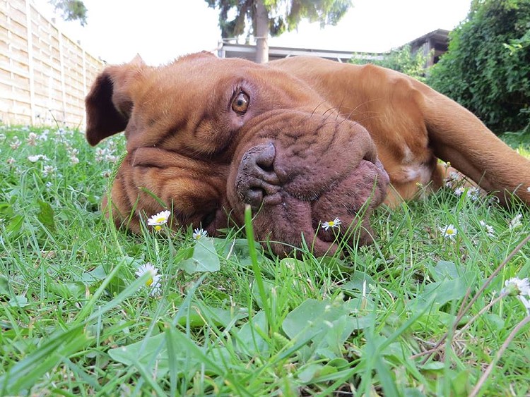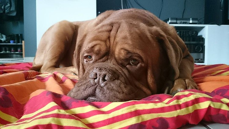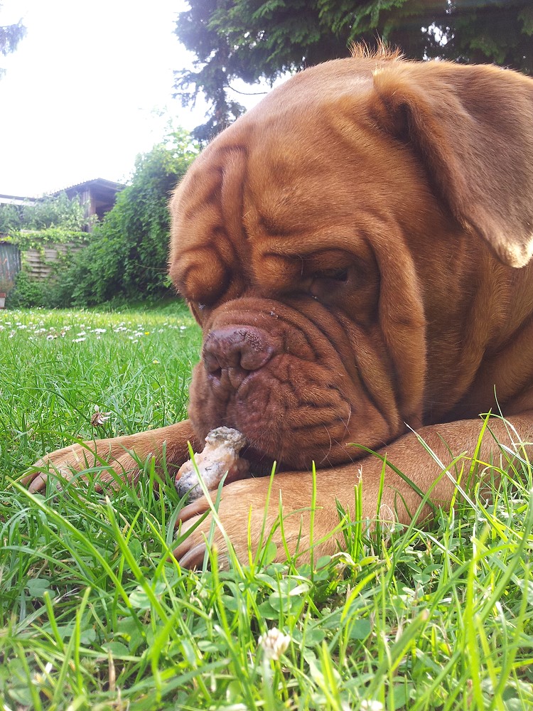 Draußen laufe ich bordeauxdoggenlike an der Leine, bin auch brav im Freilauf aber eines kann ich nicht…………………… alleine bleiben. Ich finde es fürchterlich und habe ganz großen Seelenschmerz, wenn mein geliebter Mensch mich verlässt