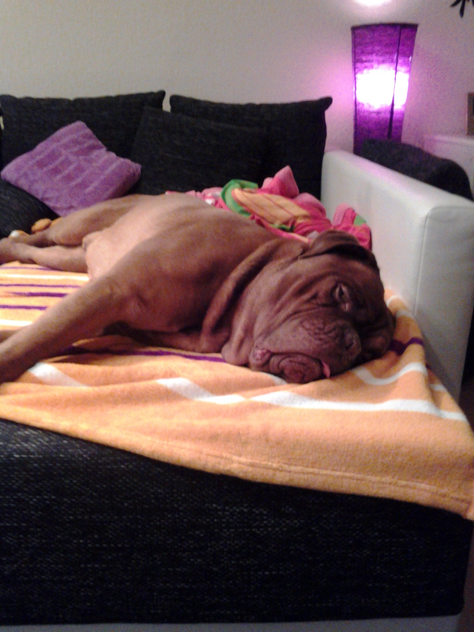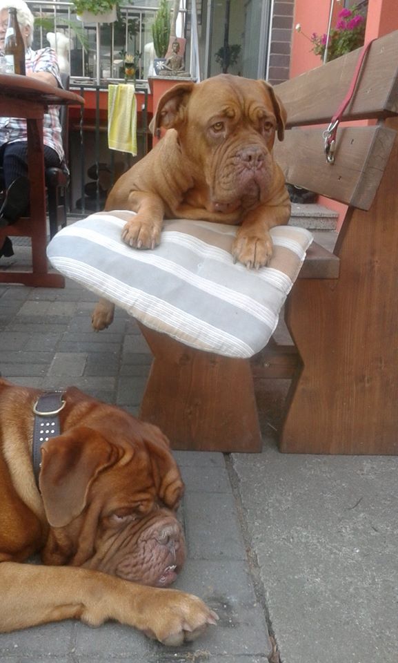 Constantin war den Frauen eh mehr zugewandt als den Männern und so haben die Beiden einen Glücksgriff gelandet. Constantin darf sogar mit zur Arbeit in ein Altenheim. Somit haben wir einen weiteren „berufstätigen Hund“ und die Streicheleinheiten werden ihm sehr entgegenkommen, dem kleinen Schmuser. Eine Freundin hat er auch in der Nachbarschaft….. die Selma, die ein paar Monate vorher durch uns vermittelt wurde. Wie kann es Bordeauxdogge also besser gehen?